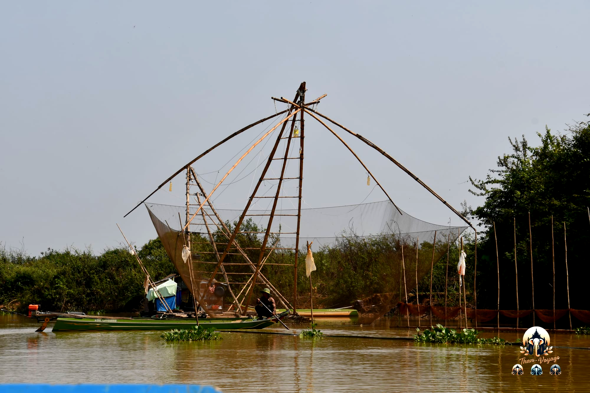 Nous croisons une quantité impressionnante de ces immenses filets de pêche, qui servent à capturer les petits poissons qui serviront à préparer la sauce fermentée du même nom. Notre guide nous expliquera qu'on les utilise plus particulièrement à basses eaux, en les laissant immergés une demi-heure environ avant de les remonter pour récupérer le précieux butin.