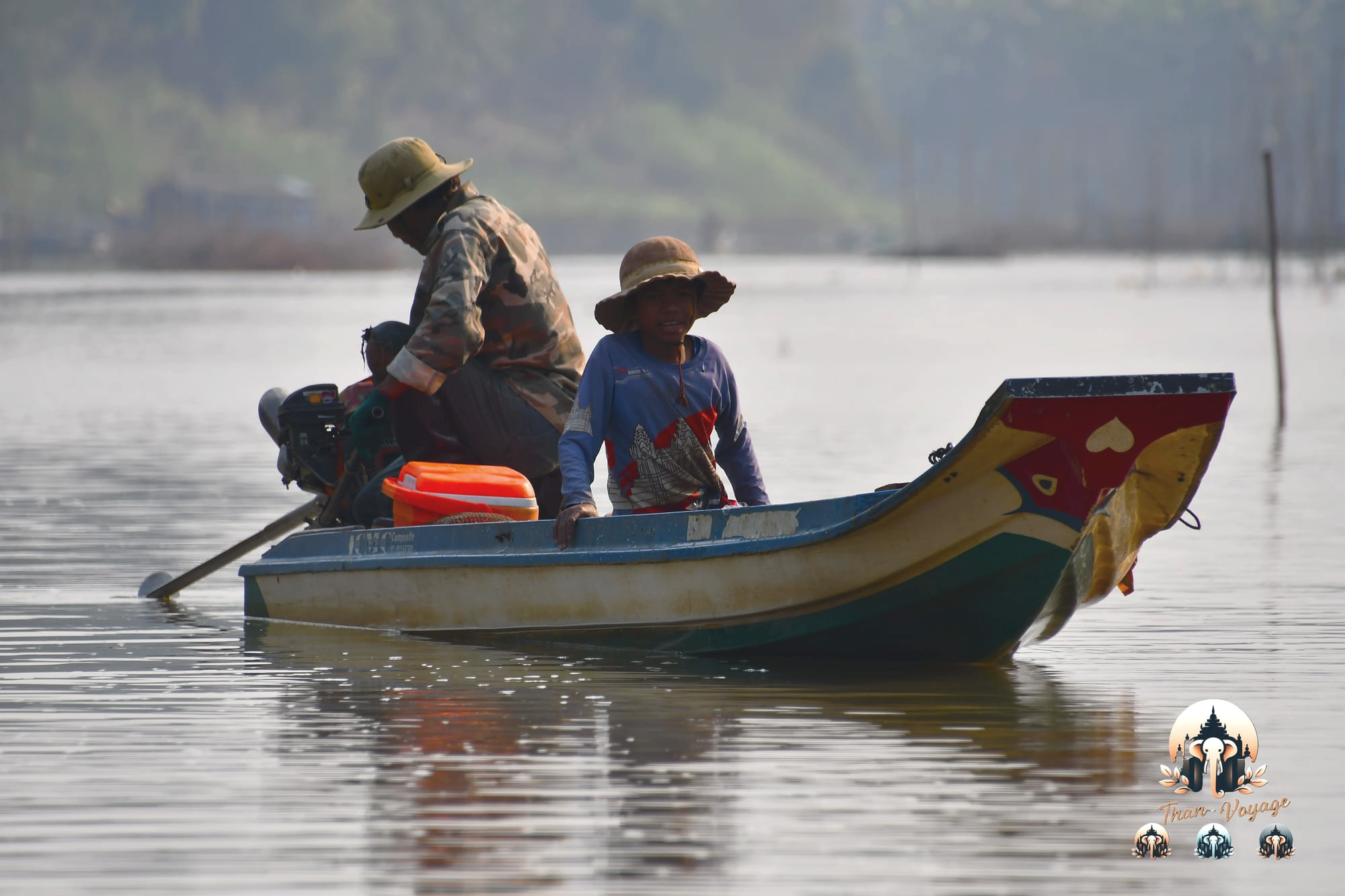 Très vite, il prend le temps de nous expliquer ce que nous croisons : techniques de pêche, oiseaux, organisation de la vie au fil de l’eau, adaptation aux crues, fonctionnement des villages… Il ne se contente pas de piloter. Il partage vraiment son pays avec nous, avec plaisir et sans jamais donner l’impression de réciter quelque chose.