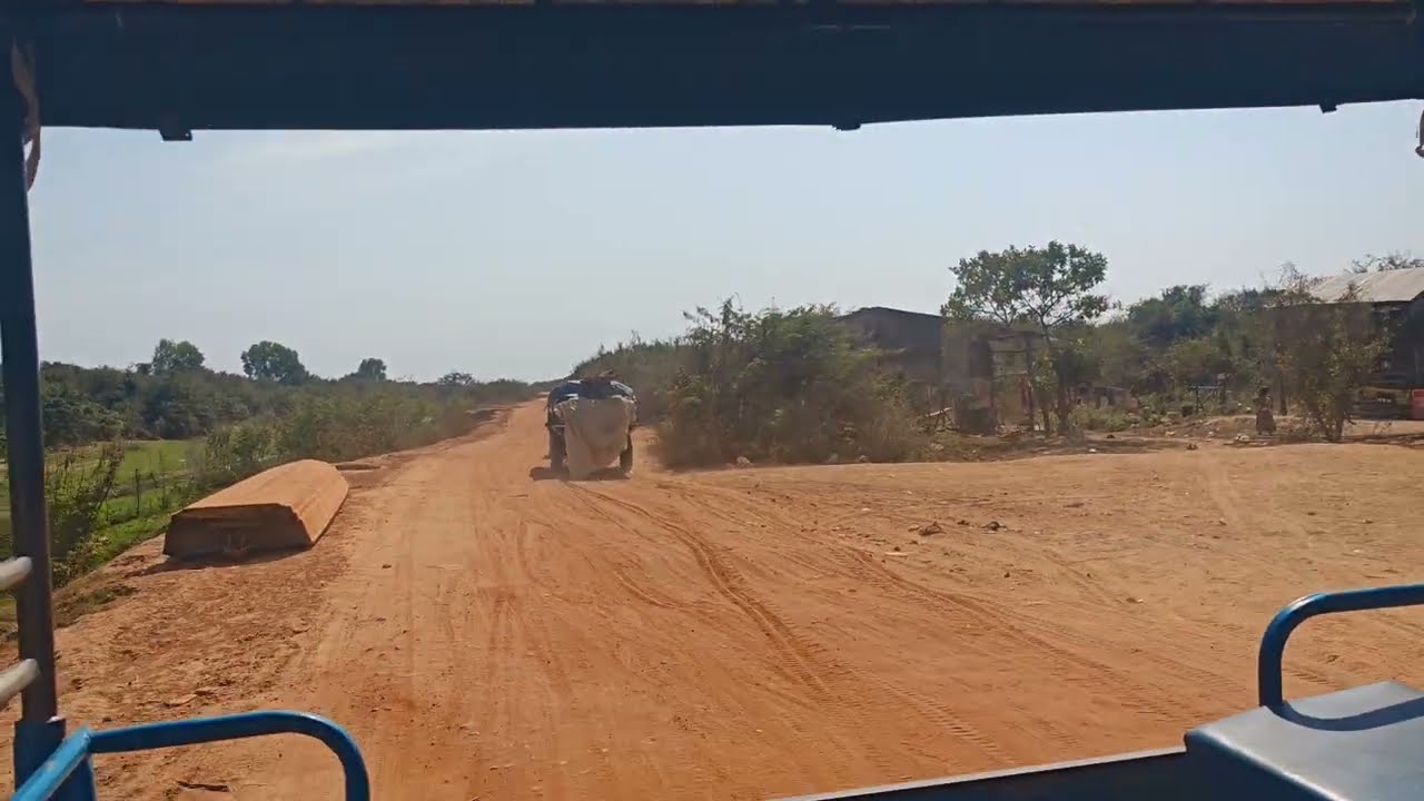 Un énorme tuktuk nous attend alors pour nous conduire jusqu’à la route. Le problème, c’est que la piste empruntée ne ressemble pas du tout à une vraie route. Le trajet est terriblement cahoteux. Nous nous cognons plusieurs fois la tête contre la structure du toit.