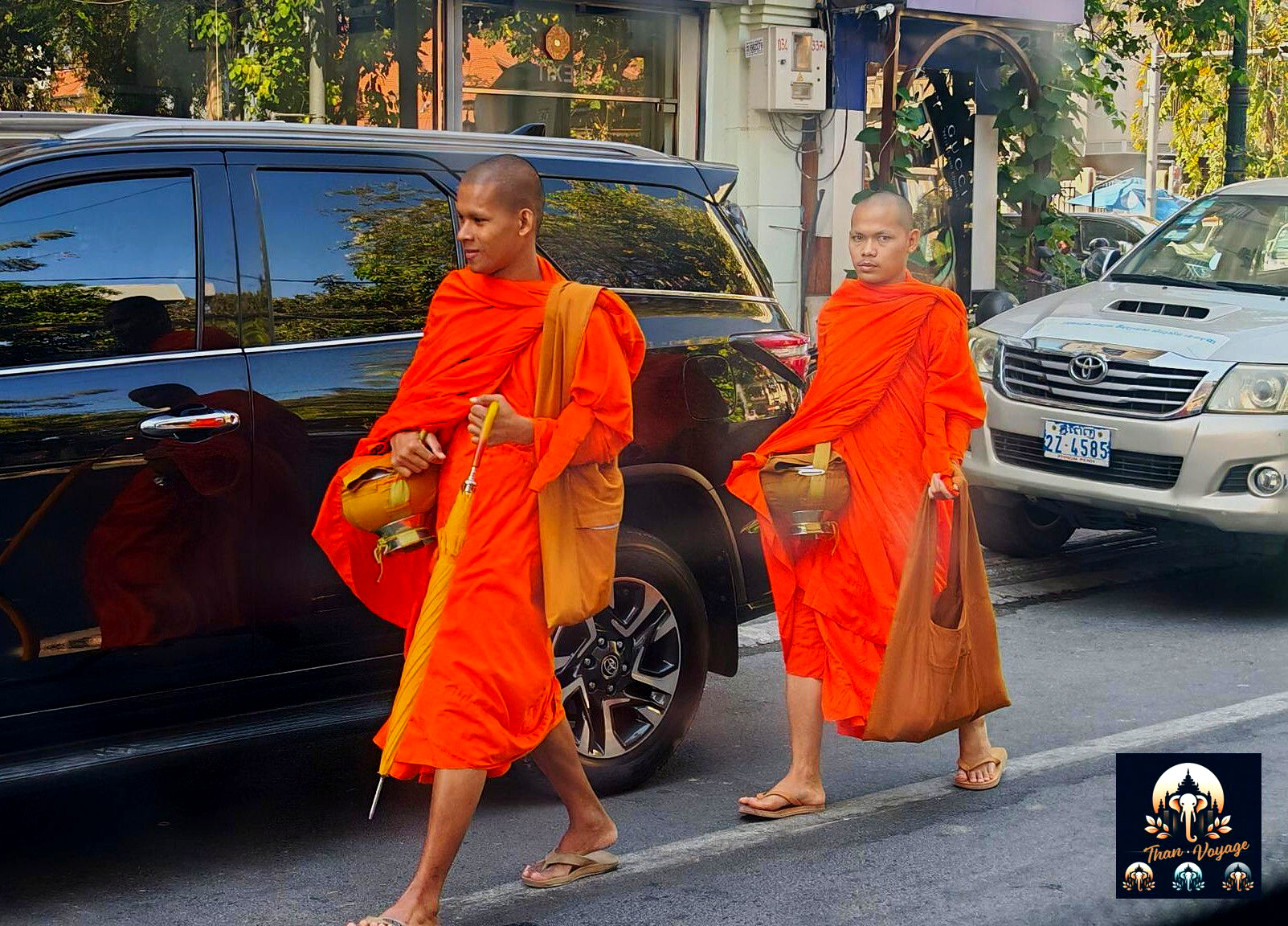 L'occasion de croiser quelques moines en route pour le Tak Bat