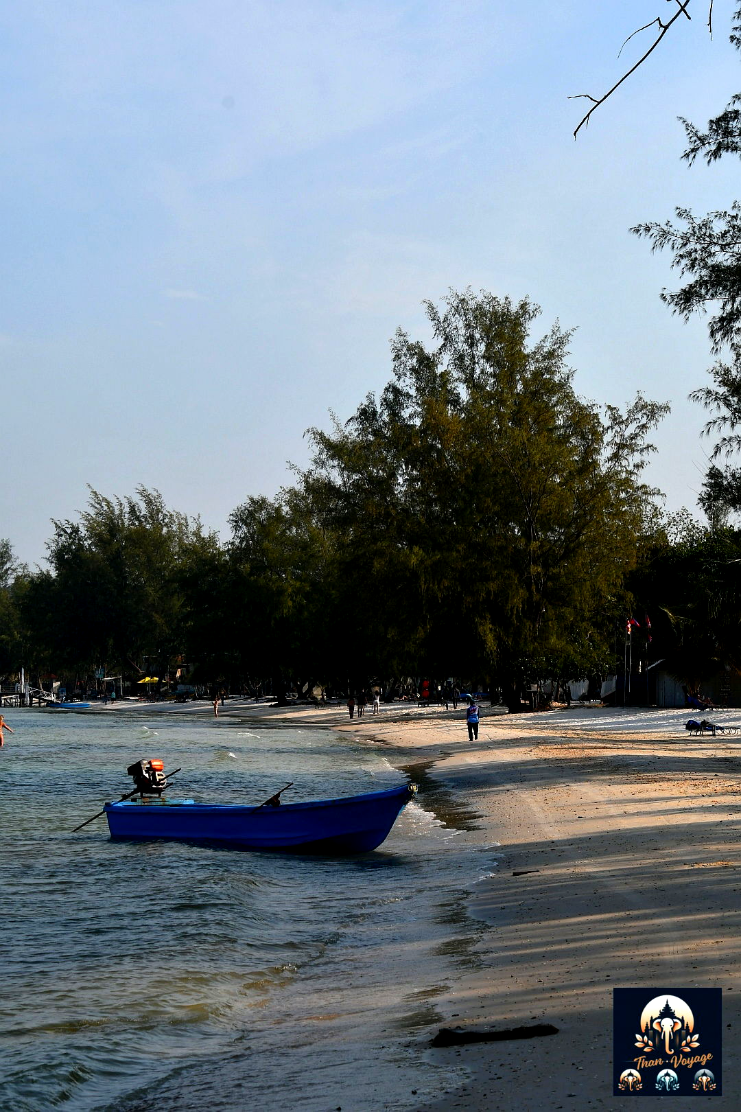 Je ne dirais pas que l’eau est turquoise, pas au sens spectaculaire qu’on peut trouver ailleurs. Le golfe de Thaïlande n’a pas la couleur irréelle de la mer d’Andaman. En revanche, il y a déjà tout ce qui suffit à faire la différence : du sable blanc, des cocotiers, très peu de monde, et cette impression immédiate d’être entrés dans une autre partie du voyage.