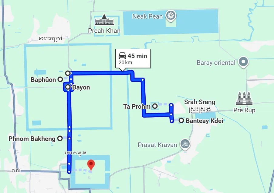Il est bien entendu possible d'ajouter certains temples croisés en cours de route, tels que le Banteay Kdei ou encore le Phnom Bakheng, ce dernier étant particulièrement prisé au coucher du soleil.