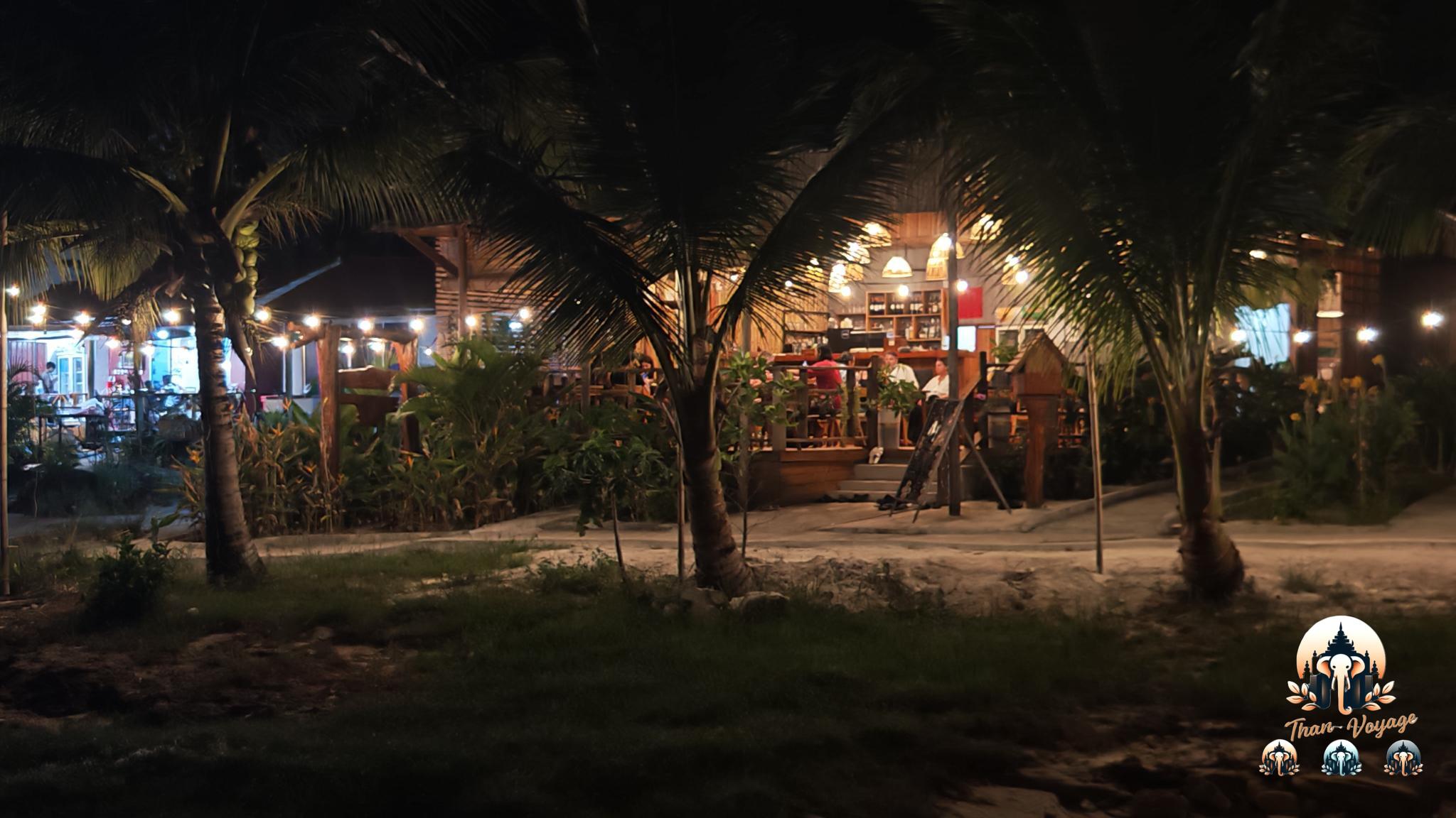 Le cadre joue déjà beaucoup : terrasse en bois face à la mer, ambiance calme, détendue, très agréable en soirée. Mais surtout, nous y avons très bien mangé. Entre les plats cambodgiens, les fruits de mer, les cocktails et l’ambiance générale, le niveau nous a semblé franchement très bon pour une adresse d’île. Tout ça pour une addition finalement très douce.