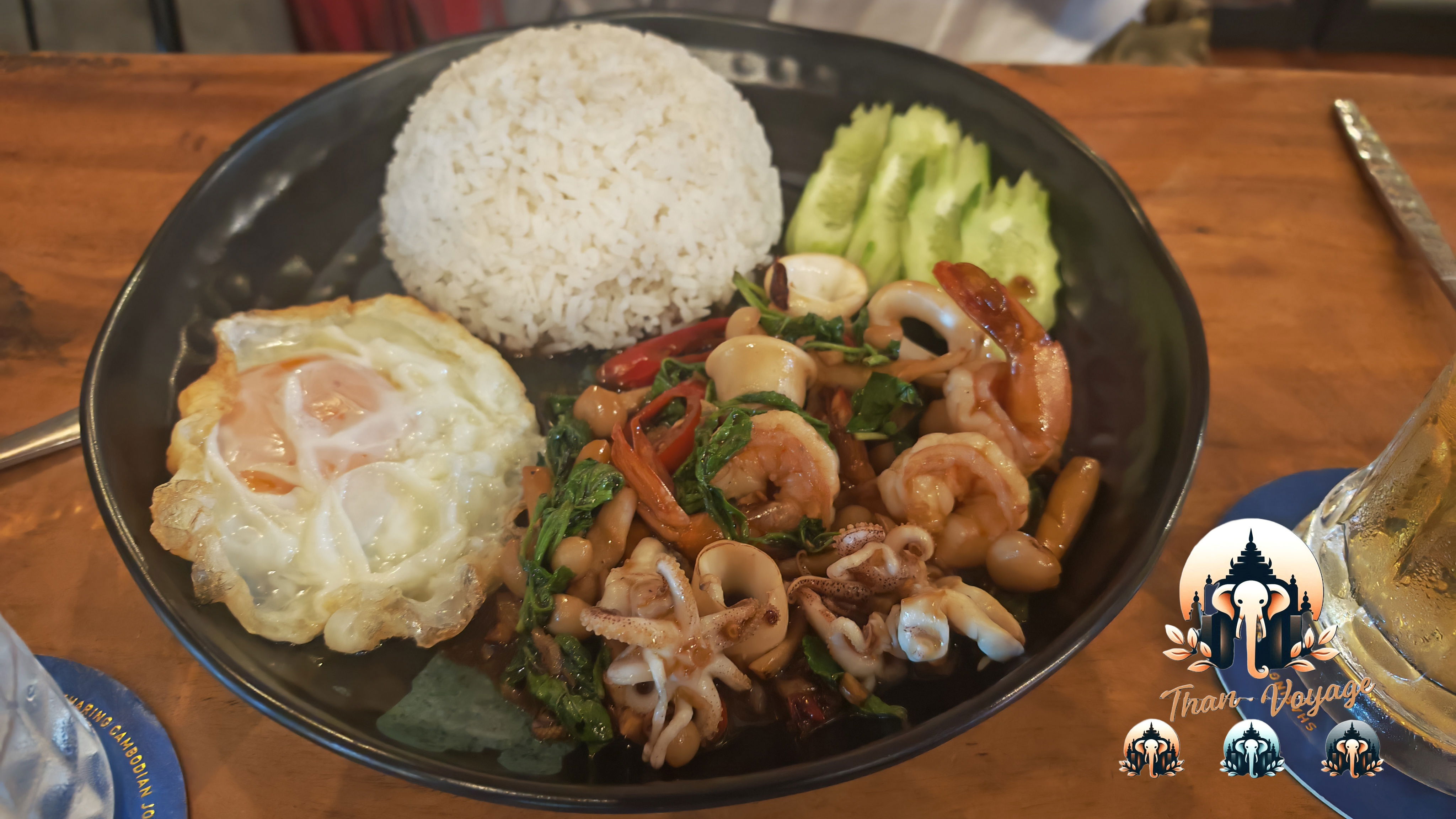 À Phnom Penh, certaines adresses bien situées affichent vite des prix très touristiques sans que l’assiette suive vraiment. Ici, nous avons trouvé l’ensemble plus équilibré. Ce n’est évidemment pas un petit stand de rue à prix cassés, mais pour le quartier, la qualité des plats et le confort de l’adresse, les tarifs nous ont semblé cohérents.